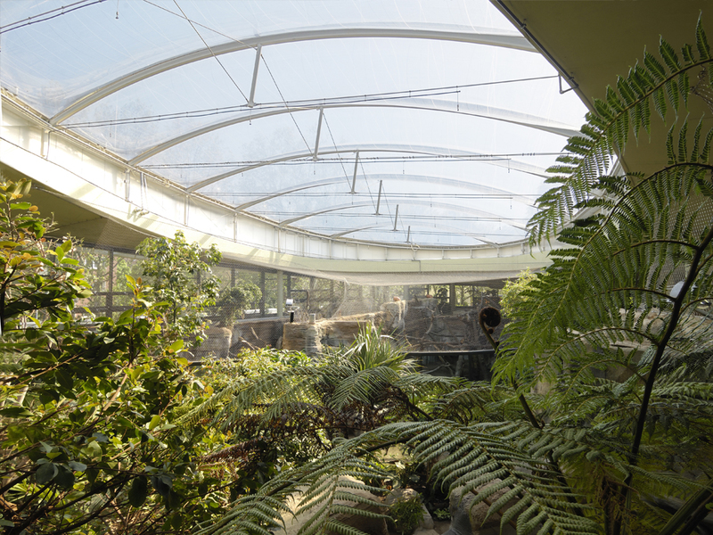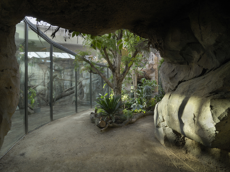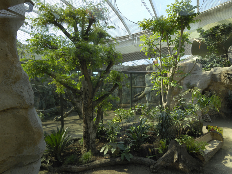 Borgoriwald Tiergehege Zoo, Frankfurt am Main Neubau der Innen und Außengehege der Menschenaffen: Bonobos, Gorillas und Orang Utans